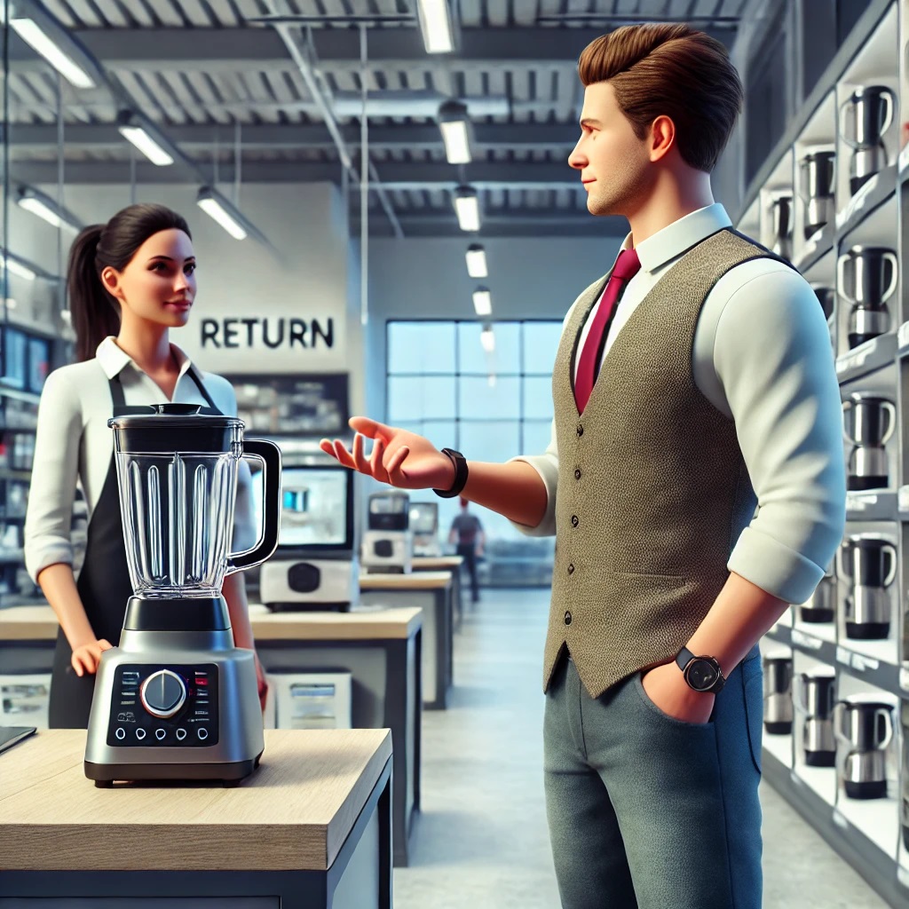 try /traɪ/ 尝试;try this on /traɪ ðɪs ɔn/ 试穿这个;come in /kʌm ɪn/ 有……(尺寸、颜色等);other /ˈʌðər/ 其他的;colors /ˈkʌlərz/ 颜色;sizes /ˈsaɪzɪz/ 尺寸;return policy /rɪˈtɜrn ˈpɑləsi/ 退货政策;warranty /ˈwɔrənti/ 保修;product /ˈprɑdəkt/ 产品;