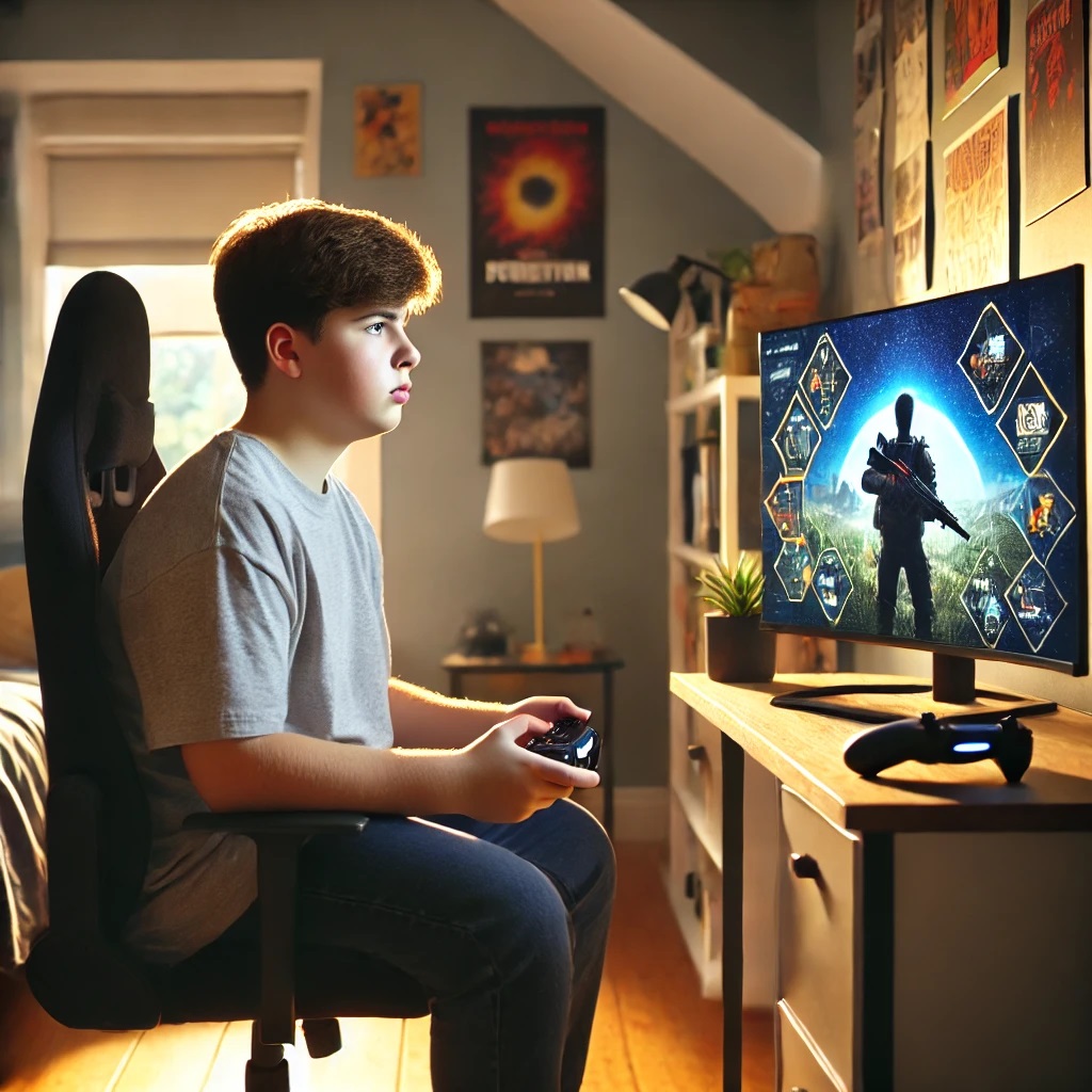 play video games /pleɪ ˈvɪdioʊ ˌɡeɪmz/ 玩电子游戏