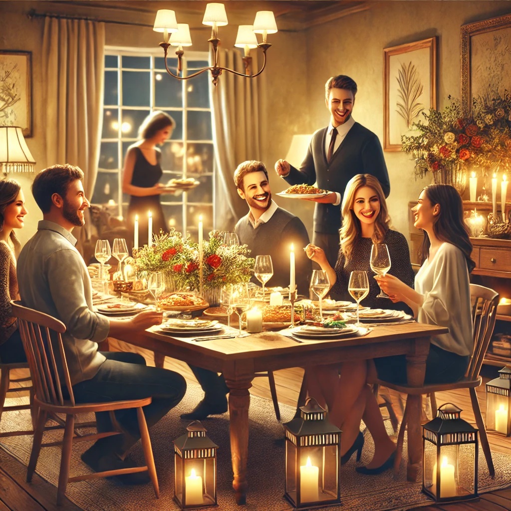 host a dinner party /hoʊst ə ˈdɪnɚ ˈpɑrti/ 举办晚宴