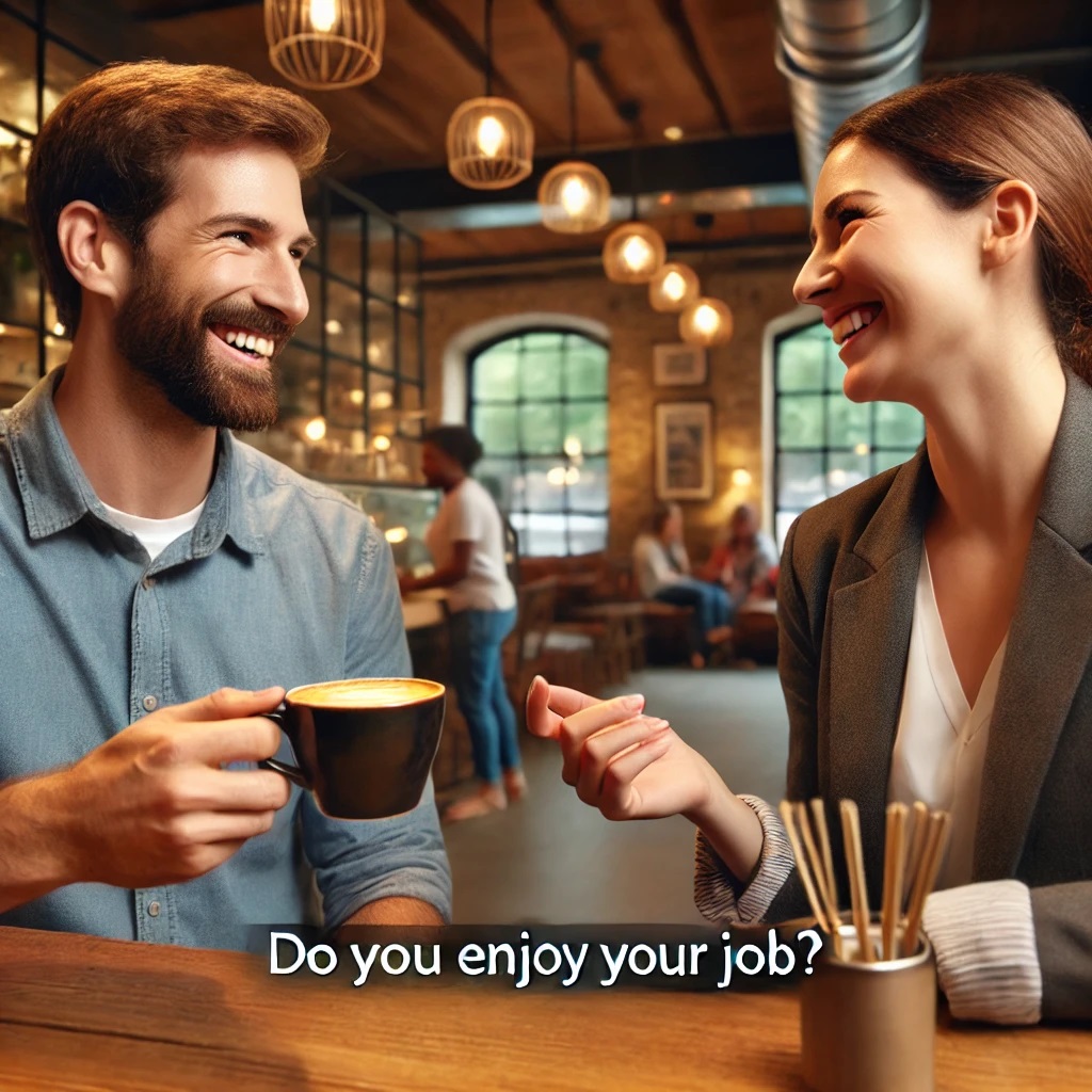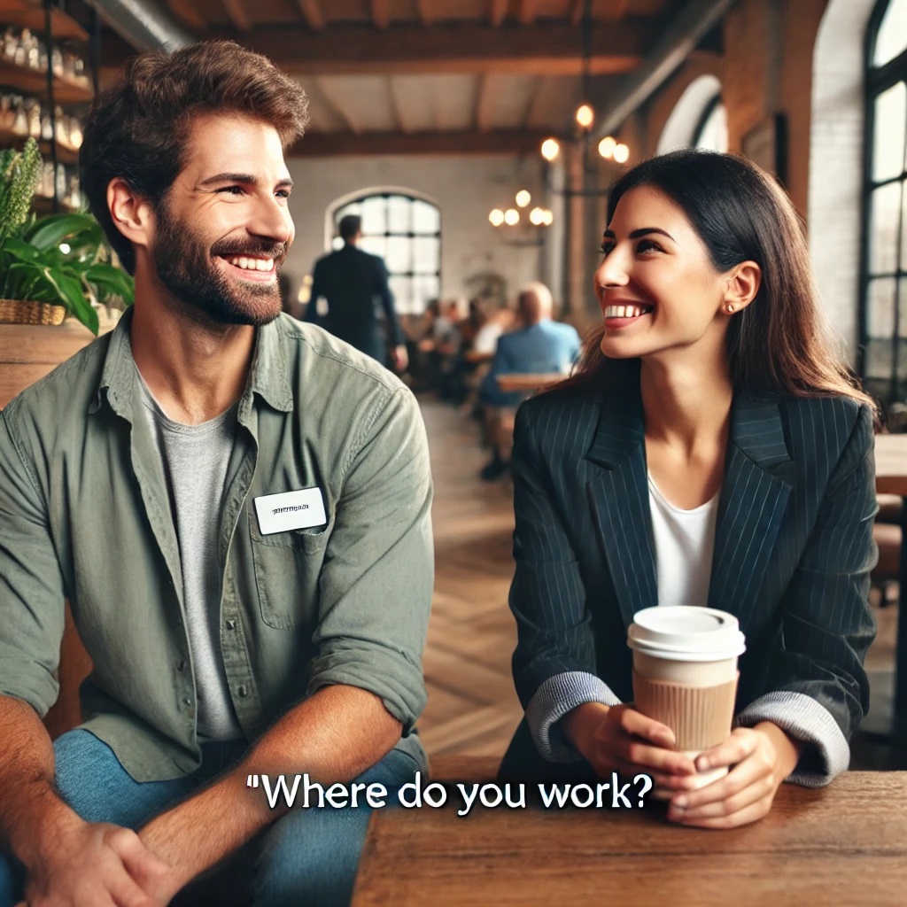 what /wʌt/ 什么;do /du/ 做;where /wɛr/ 哪里;work /wɜrk/ 工作;enjoy /ɪnˈdʒɔɪ/ 喜欢;享受;job /dʒɑb/ 工作;live /lɪv/ 居住;nearby /ˌnɪrˈbaɪ/ 附近;how long /haʊ lɔŋ/ 多久;here /hɪr/ 这里;have /hæv/ 有;any /ˈɛni/ 任何的;siblings /ˈsɪblɪŋz/ 兄弟姐妹;married /ˈmærɪd/ 已婚的;kids /kɪdz/ 孩子们