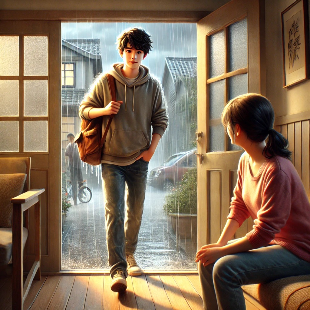 Did you get caught in the rain? /dɪd ju ɡɛt kɔt ɪn ðə reɪn/ 你被雨淋到了吗?