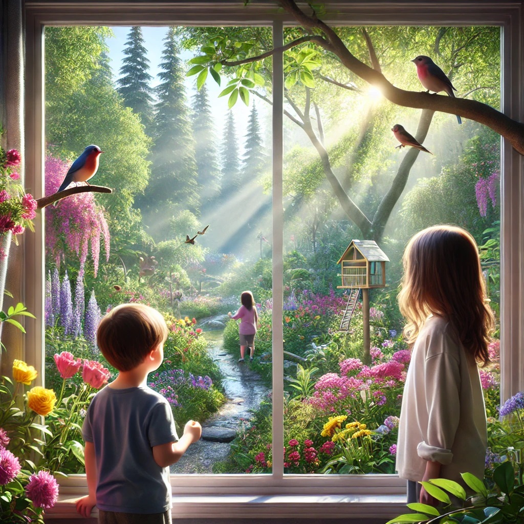 这是一个美丽的早晨。小鸟在窗外唱歌。