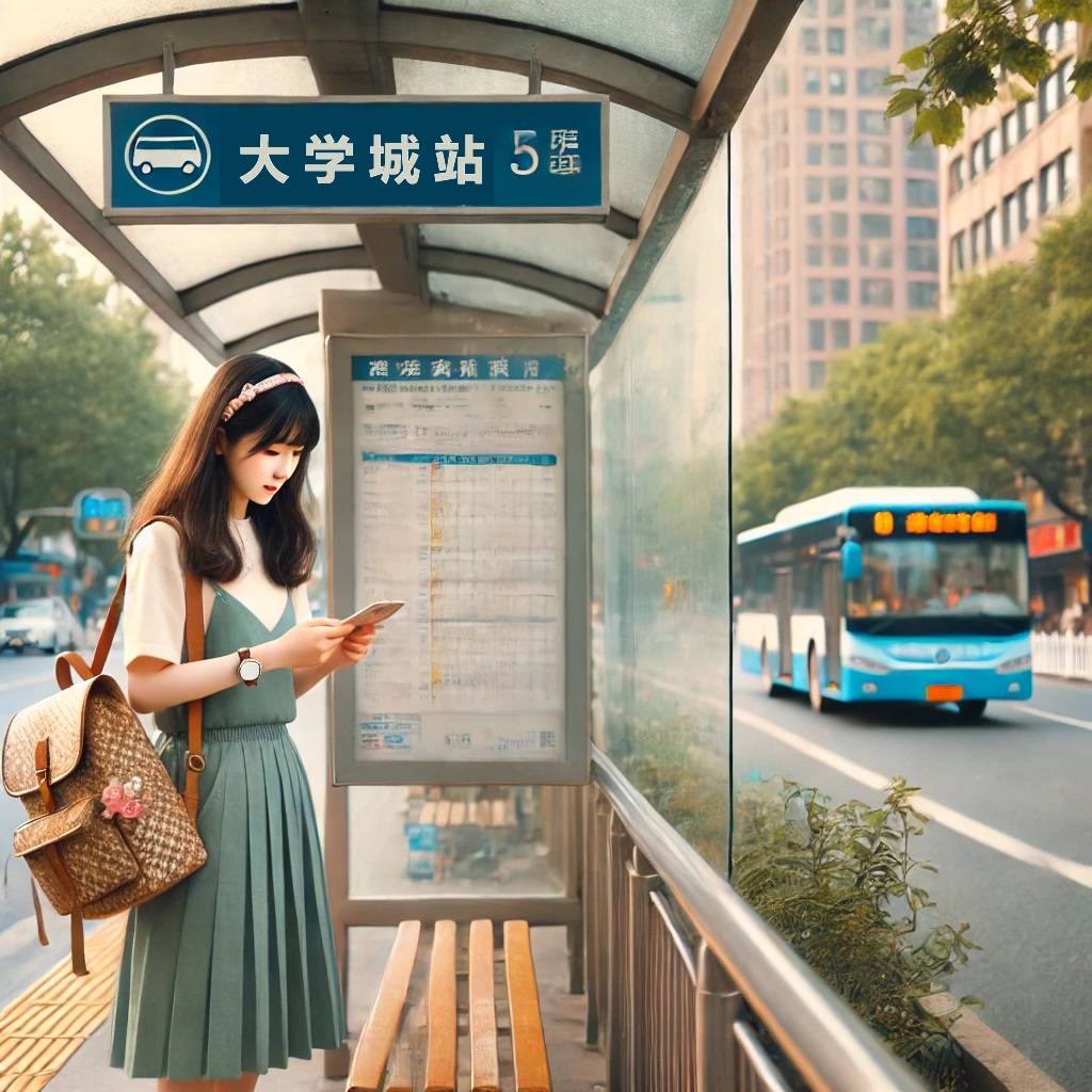 她正在等公交车。