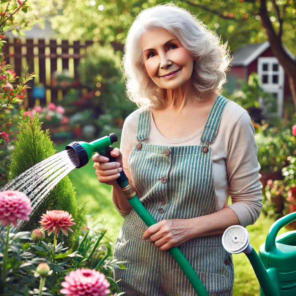 她正在给植物浇水。
