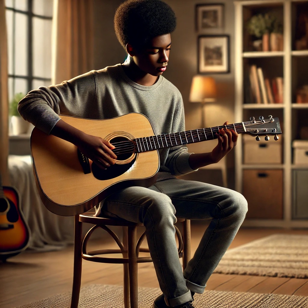 He is playing the guitar. /hi ɪz ˈpleɪɪŋ ðə ɡɪˈtɑr/;He’s playing the guitar. /hiz ˈpleɪɪŋ ðə ɡɪˈtɑr/