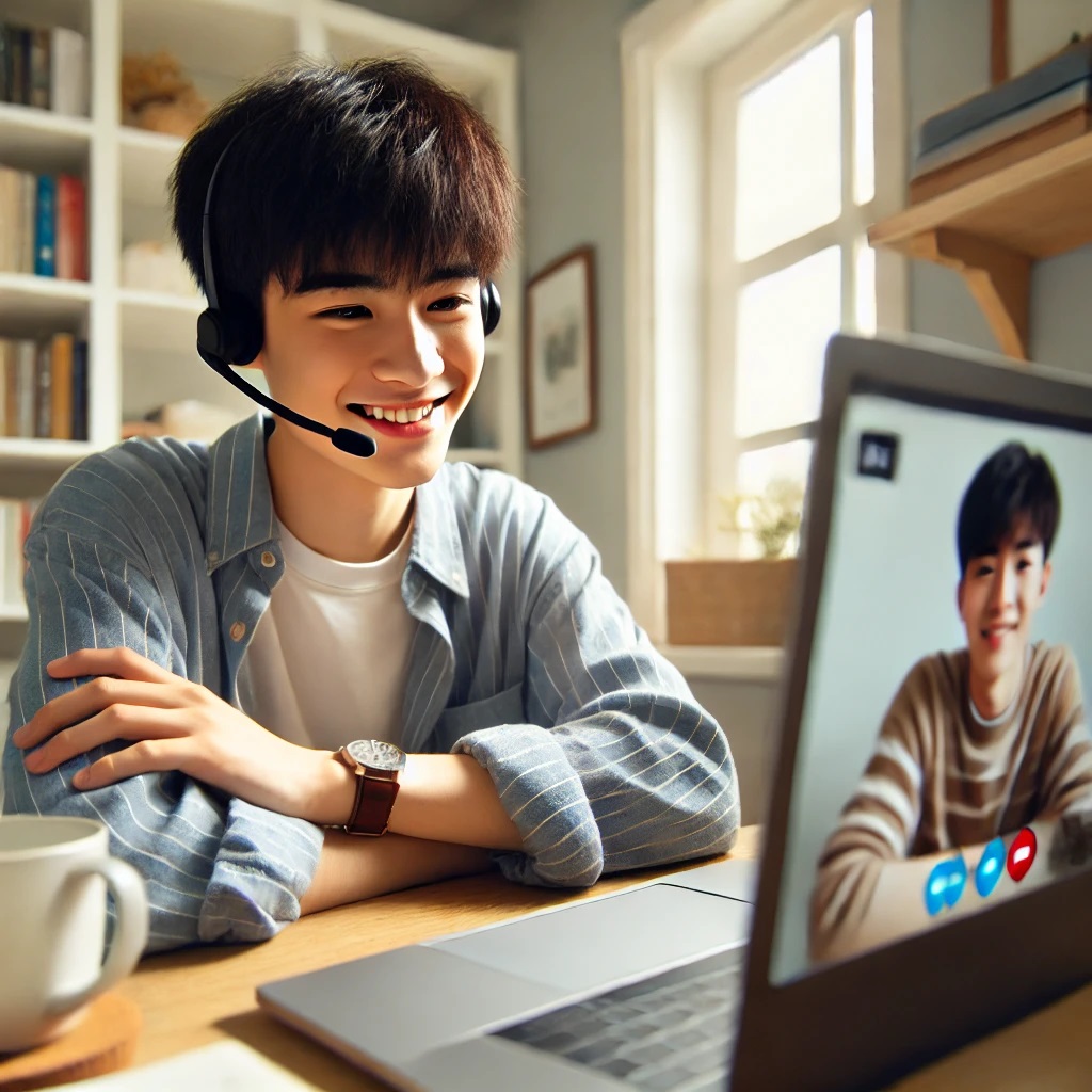 They are having a video chat. 也可以直接说 They’re video chatting.(他们在视频聊天)。