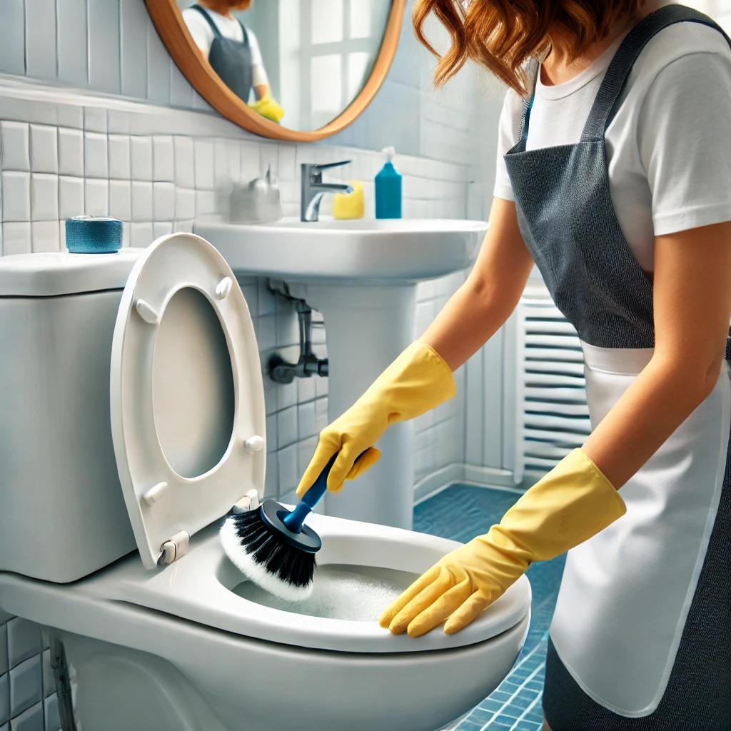 scrub the toilet bowl /skrʌb ðə ˈtɔɪlət boʊl/