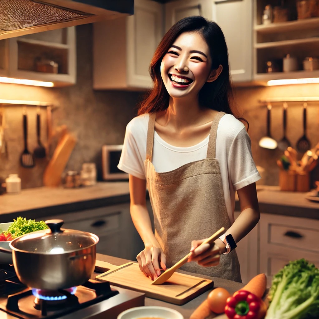 She likes cooking dinner. /ʃi laɪks ˈkʊkɪŋ ˈdɪnər/