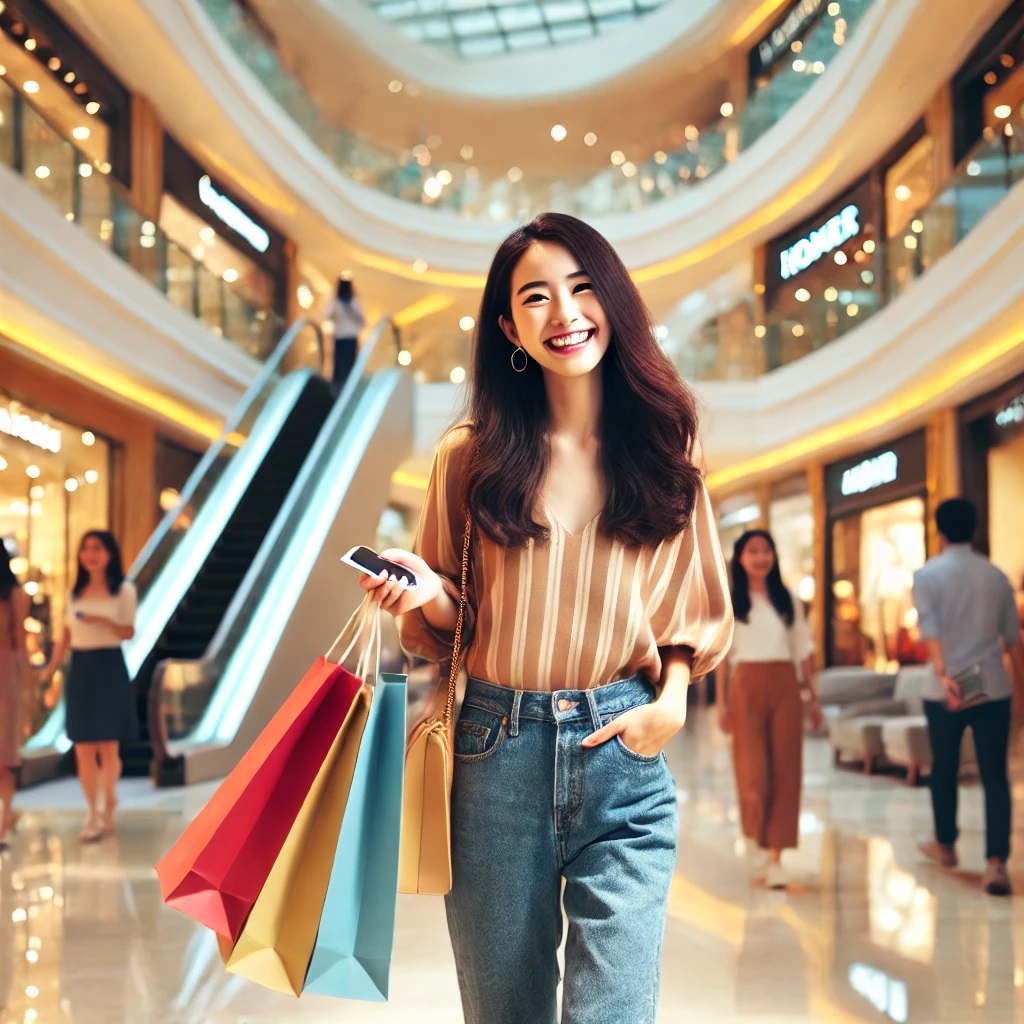 强调对购物这件事本身的乐趣和享受,更适合描述兴趣或爱好。如: