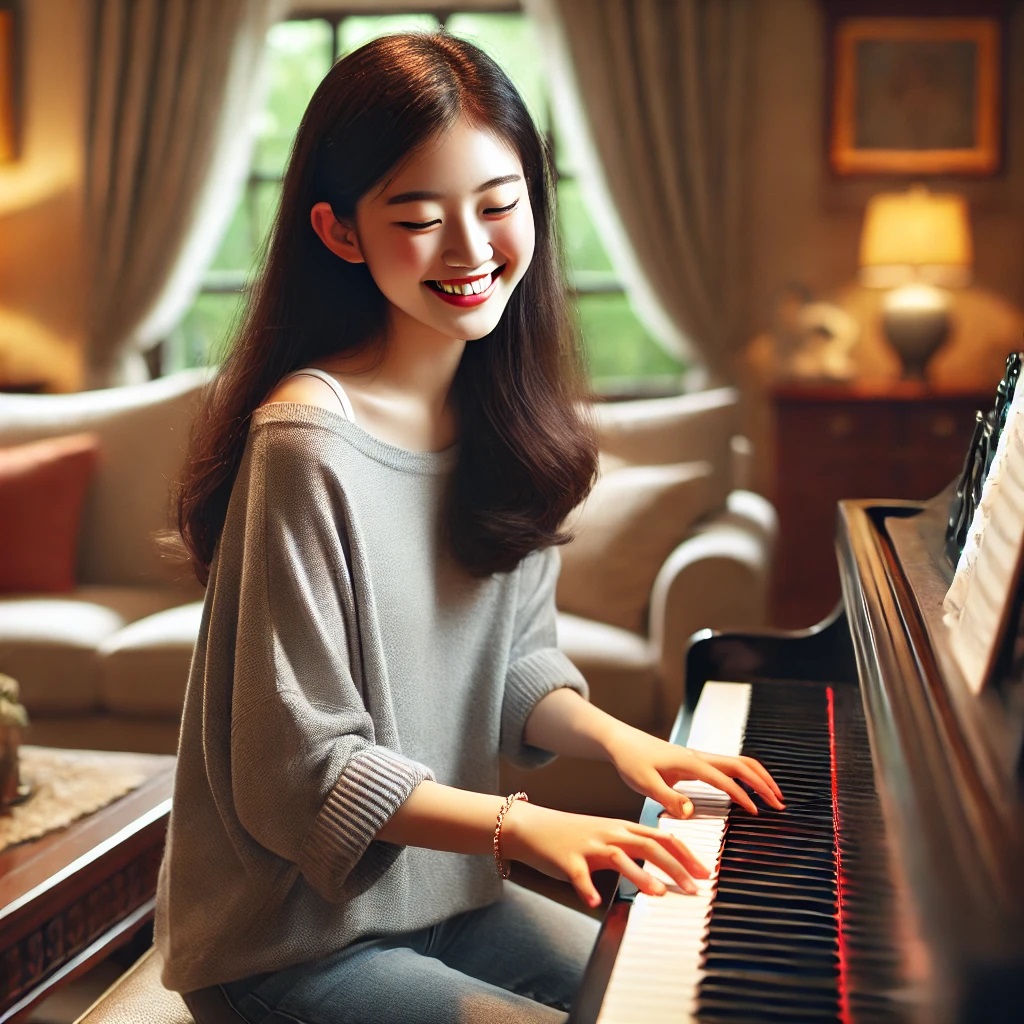 She likes playing the piano. /ʃi laɪks ˈpleɪɪŋ ðə piˈænoʊ/