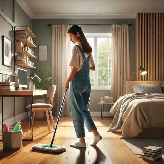 I am cleaning my room. / I’m cleaning my room.(aɪ æm / aɪm ˈkliniŋ maɪ rum)