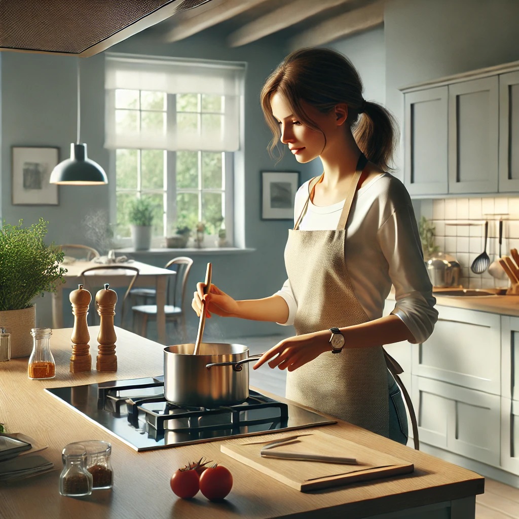 She is cooking dinner. / She’s cooking dinner.(ʃi ɪz / ʃiz ˈkʊkɪŋ ˈdɪnər)