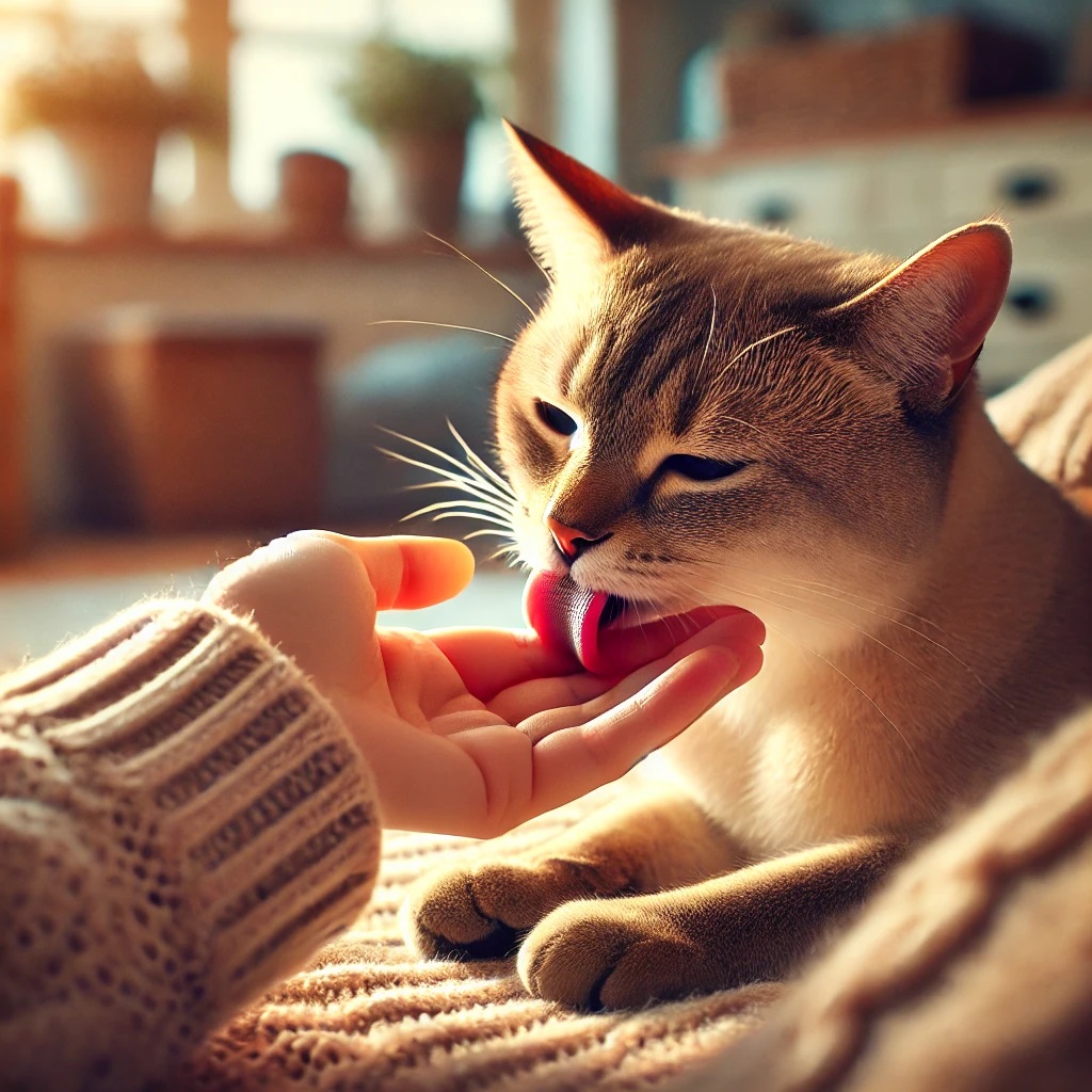 It is licking my hand. / It’s licking my hand.(ɪt ɪz / ɪts ˈlɪkɪŋ maɪ hænd)
