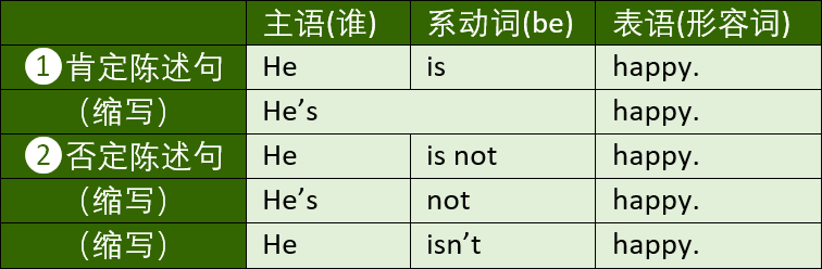 He is happy. /hi ɪz ˈhæpi/ 他很开心。