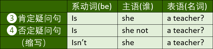 Is she not a teacher? /ɪz ʃi nɑt ə ˈtitʃər/ 她不是老师吗?