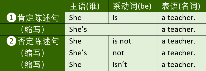 She is not a teacher. /ʃi ɪz nɑt ə ˈtitʃər/ 她不是老师。