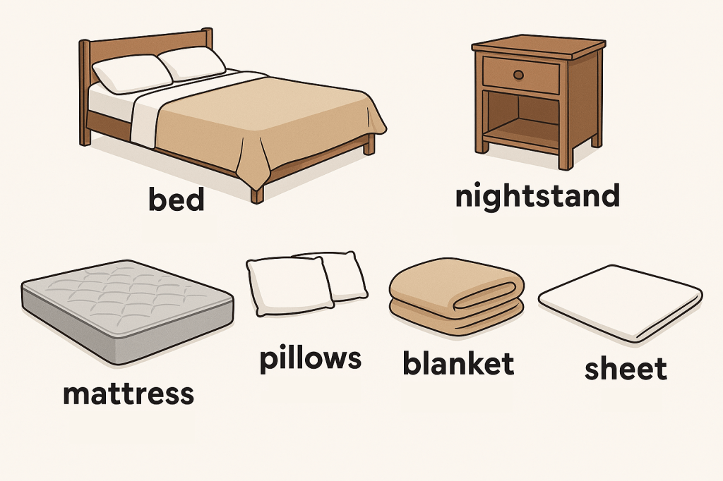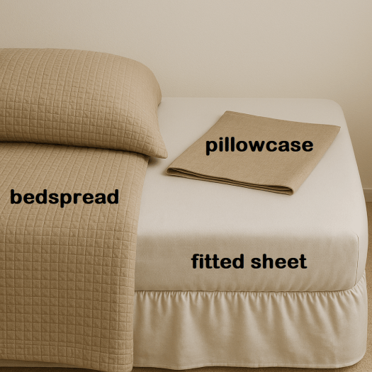 fitted sheet /ˈfɪtɪd ʃit/ 床包(带松紧边的床单)
