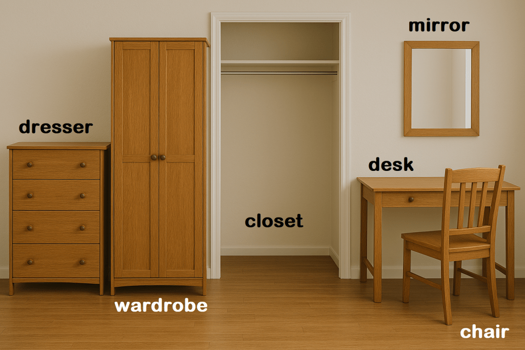 dresser /ˈdrɛsər/ 梳妆台;五斗柜
