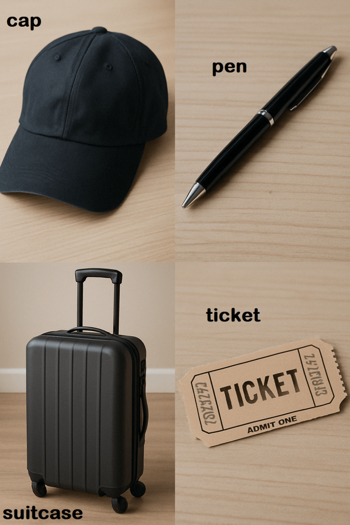 5. cap /kæp/ 帽子(有帽舌的,如棒球帽)