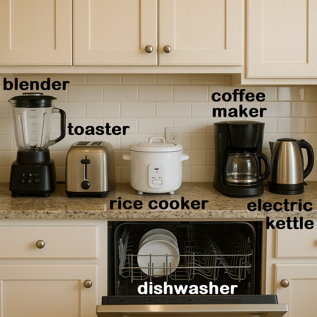 dishwasher /ˈdɪʃˌwɑʃər/ 洗碗机