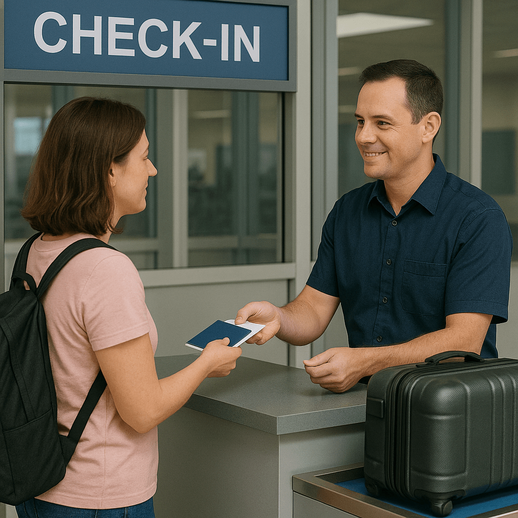 /æt ðə ˈtʃɛk ɪn ˈkaʊntər/