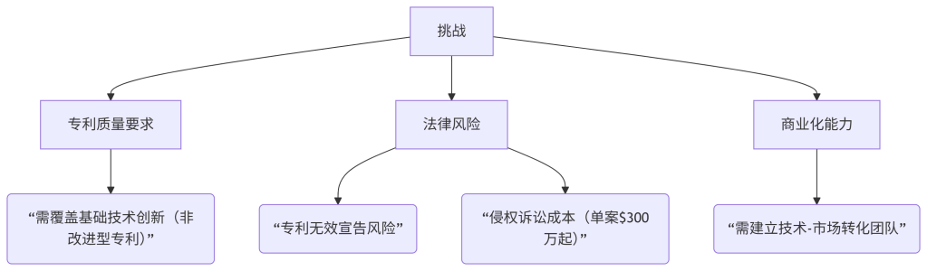 - 核心专利:外围专利 ≈ 1:3(参考IBM专利组合模型)
