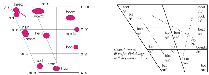美式英语完整元音梯形图(Vowel Trapezium – General American)