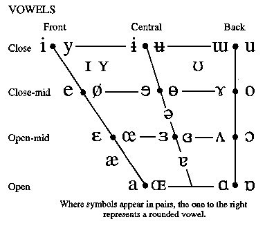 下面给你解释如何读这张语言学标准图(很多语音学教材用的就是这个):