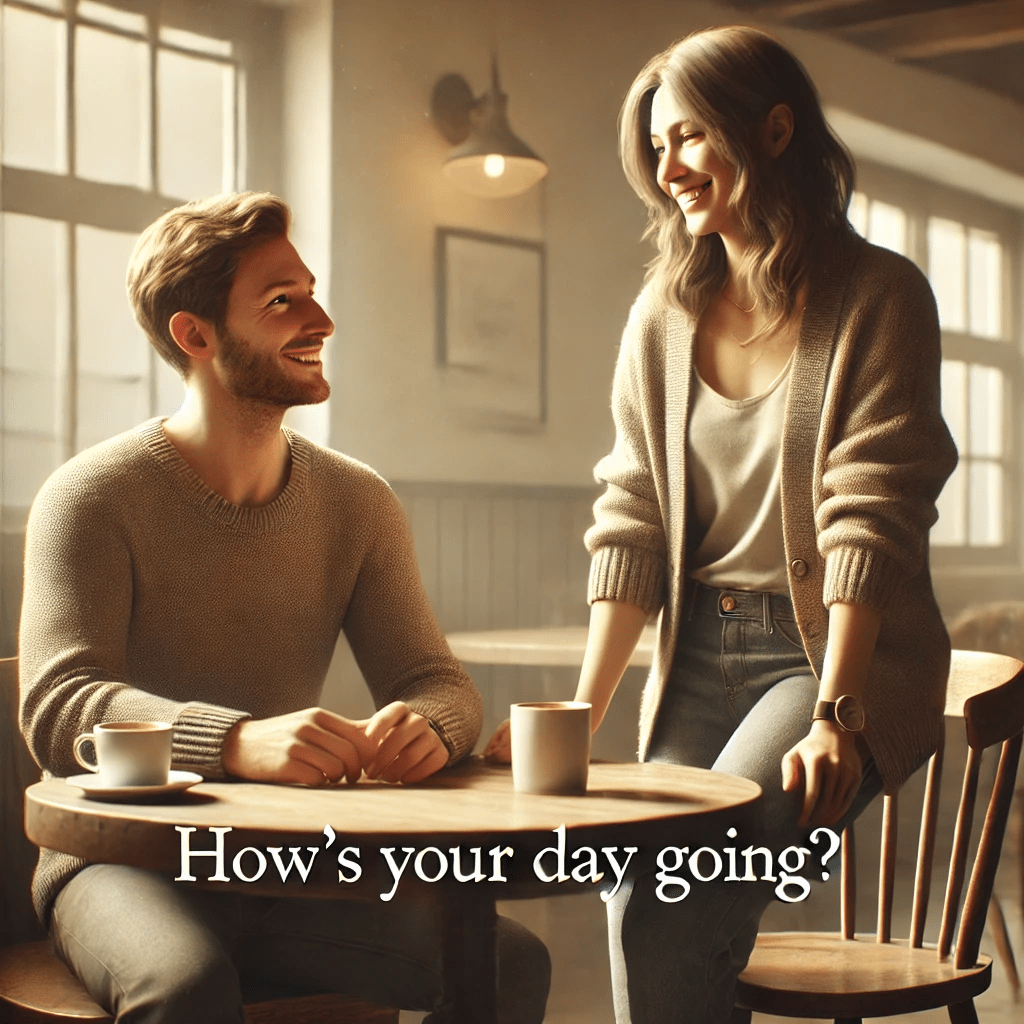 How’s your day going? /haʊz jɚ ˈdeɪ ˈɡoʊɪŋ/ 你今天过得怎么样?