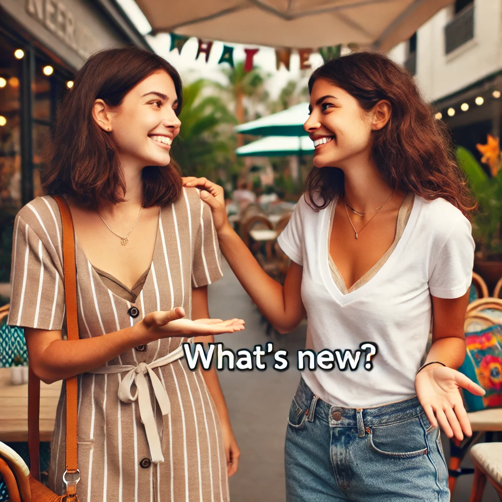 how /haʊ/ 如何;how’s /haʊz/ = how is;what /wʌt/ 什么;what’s /wʌts/ = what is;up /ʌp/(口语)怎么了;how /haʊ/ 如何;hey /heɪ/ 嘿(打招呼);hi /haɪ/ 嗨(打招呼);new /nuː/ 新的;everything /ˈɛvriˌθɪŋ/ 一切;yo /joʊ/ 哟(随意的问候语)