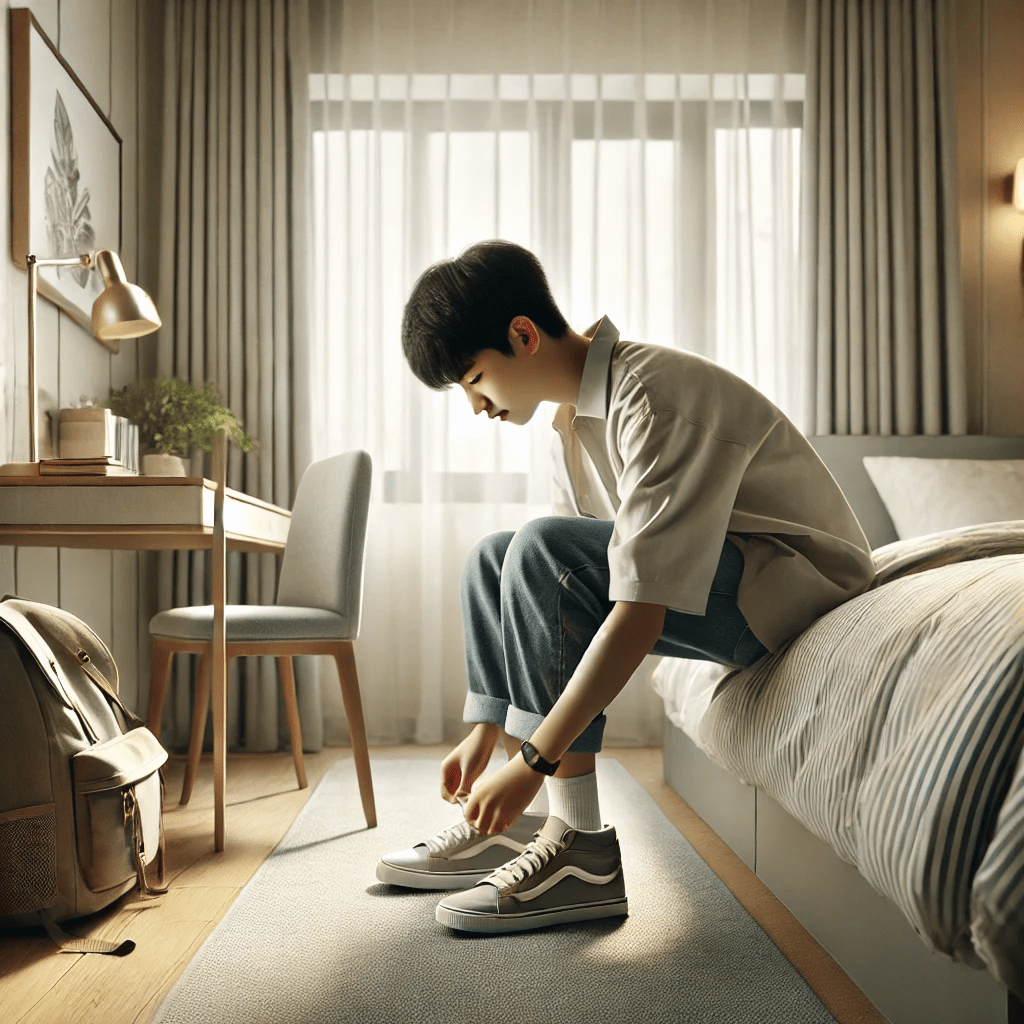 put on my shoes /pʊt ɑn maɪ ʃuz/ 穿上鞋子