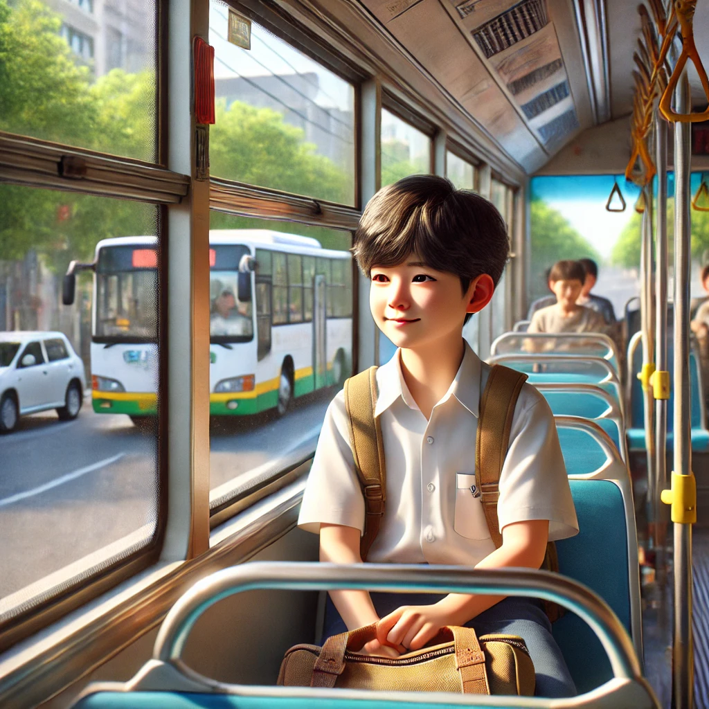 take the bus to school /teɪk ðə bʌs tə skul/ 坐公交车去上学